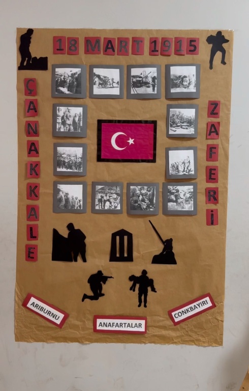 18 Mart Çanakkale Zaferi ve Şehitleri Anma Günü münasebetiyle okulumuzda gerçekleştirilen programızda günün anlam ve önemini belirten konuşmadan sonra öğrencilerimiz şiirlerini okudular. "Çanakkale Geçilmez!" oratoryosu ile Çanakkale'nin ve bu vatanın geçilmeyeceğini vurguladılar. Şehit mektubunun okunması ile duygusal anların yaşandığı programımız okulumuz öğretmeni Yasemin OKUMUŞ yönetimindeki Çanakkale türküleri ile son buldu. Programın hazırlanmasında emeği geçen öğretmenlerimize teşekkür ederiz.